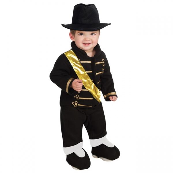 Nydelig liten Michael Jackson kostyme som består av i sort fleece drakt med gullbånd og print, samt sort hatt.